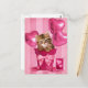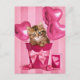 Gorgeous siberian kitten in pink bow pot with heart shaped foil balloons, painted by artist Maryline Cazenave.