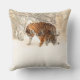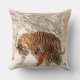Wild Siberian Tiger and Cub Throw Pillow in Comfy Cotton. Double-sided with close-up image on one side and full image with matching bottom border on the other. Joy in the Morning.