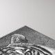 Photograph in black and white of a lying Siberian Tiger.
