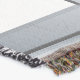 A quality printed throw has its advantages. This is a much finer weave throw than its loopier cousins, and though lighter, it is worth the investment for custom room accessorizing. The back is much prettier than the typical brown, and the fringe on the long sides very vivid, the selvage nicely done. Before photographing, I washed the throw in cold water, delicate, with a thicker woven throw the same size. On tumble dry low, this throw was dry in half the time as the other. This is a very practical quality if you use throws for furniture covers or to wrap up in frequently. The sleekness of the fabric makes it a great layer for accenting or protecting without the feeling of sitting on too much stuff. Perfect for napping or when you feel a light chill coming on. The color printing is beautiful and on this fabric, matched the design and color of my Photoshop image. This is an advantage for blending room fabrics and colors. The fringe on the short sides prints the colors from the design image and therefore varies from the side fringe. I streaked a white fractal line through the plaid pattern to give the illusion of weaving. This printed as crisp as an illusory thread, and put some white in the short side fringe, showing another advantage of print vs loomed- for artistic purposes, line lines, detail, and color integrity can be planned and preserved. My loomed throws have color limitations and more of a needlepoint texture. Print throws reproduce an exact image. The throw felt a little stiff straight out of the package, but this went away in the first delicate wash. Of course I searched the wash water for ink or bleeding and there was none.