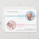 A neutral, white, background with focal point photo windows in blue and pink. Ideal as a twin siblings' birth announcement.