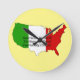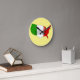 The clock did not take as long to arrive as I thought it might and was extremely well packaged. I didn't do the measurements so I didn't realize it is a little smaller than the average clock but that does not matter (just make sure you check if that's important to you).It is really nifty! It seems very solid and well made not flimsy at all. It has been going well and has kept good time in its few weeks on my wall. Nice product. Gets noticed too! Nicer in real life than the picture but true to the picture