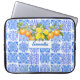 Summer Sicilian blue yellow colourful azulejo Amalfi Mediterranean majolica laptop sleeve. Chic floral botanical citrus garden pattern inspired by the summer bright italian themed art of majolica. Beautiful Sicilian ceramic tiles in pink yellow and blue. A fun style bright design for home decor, clothes, mobile and Ipad cases, invitations and much more. You can change all text colours and fonts, click to customise further underneath the text customisation area this will take you into the design tool. A unique gift for birthdays, holidays and any special occasion. Whether for valentines day, Christmas or as a gift in general it makes a great gift idea