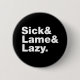 Sick & Lame & Lazy. 6 Cm Round Badge
