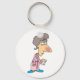 A sick woman in her dressing gown with a red nose. This design looks really effective on these Keychain