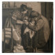 This design features a monochrome sepia-tined illustration by the English Victorian-era painter Joseph Clark (1834–1926). It depicts a sick young girl being held with affection by her father as her mother holds a bowl of soup to offer to the young child. The girl is recuperating from her illness as her family hopes that she will get better soon. There is also a healthy young girl sitting happily on the floor beside the mother. A pet rabbit is lying on the floor next to the father. It is a beautiful depiction of a loving family supporting their young daughter through an illness that is making her suffer. The original artwork was painted by Joseph Clark in 1857.