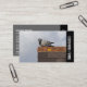 A horizontal business card template with a black side banded layout. Attractive image on the front. Company name in rotated text on the front and back with all other contact details on the back. The photo or image on the front can also be changed. The design also allows scope for additional customisation.