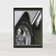 A vintage car shows off its chrome wheels and side exhaust.