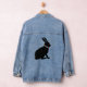 Side Profile Black Silhouette Rabbit Flowers Denim Jacket