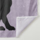 This wall tapestry is a marbled mix of purple and white with the side profile of a sitting black silhouette bunny rabbit.
