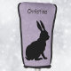 This custom golf club cover for your putters is a pretty light patterned purple with a side profile of a sitting rabbit in black silhouette. Customise your name with the template.