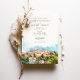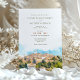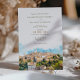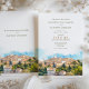 Celebrate your special day with this exquisite destination wedding invitation featuring the enchanting landscape of Siena, Italy. The design showcases a stunning watercolor illustration of Siena's historic skyline, with its iconic domes and towers nestled among lush greenery. The text is elegantly presented in a mix of classic serif and delicate script fonts, with colours ranging from muted gold and olive green to warm terra cotta. Perfect for couples planning a romantic Italian wedding, this invitation combines timeless elegance with a touch of rustic charm.
