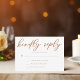 This sienna brown wedding RSVP card is a warm regal colour for a bride or groom looking for a blend between soft and masculine. The lovely tan minimalist script features simple cursive typography reading Kindly Reply above a chic, modern serif font. This flexible collection works for both afternoon and evening weddings.