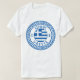 Men's white T-Shirt for the island of Sifnos, Greece with the national flag of Greece inside an Aztec circle design. You can wear this T-Shirt if you're on a trip to Sifnos or to remind you of your vacation. This summer design is also ideal for someone who is from this beautiful Greek island.