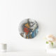 The clock did not take as long to arrive as I thought it might and was extremely well packaged. I didn't do the measurements so I didn't realize it is a little smaller than the average clock but that does not matter (just make sure you check if that's important to you).It is really nifty! It seems very solid and well made not flimsy at all. It has been going well and has kept good time in its few weeks on my wall. Nice product. Gets noticed too! Nicer in real life than the picture but true to the picture