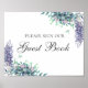 Sign our guest book. Purple flower. Floral wedding