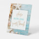 This seaside beach themed tabletop Guest Book sign with weathered wood and seashells and a light blue colour theme is a wonderful accent that can be re-used for different events.