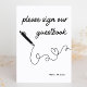 Add a touch of elegance to your special day with this modern minimalist "Please Sign Our Guestbook" sign. Featuring a sleek black-and-white design with a hand-drawn pen and heart motif, this sign guides guests with style. Ideal for weddings, engagement parties, or any celebration, it’s the perfect way to ensure your memories are captured. Personalise it with names and dates for a custom touch that reflects your unique love story. Whether your theme is classic, contemporary, or industrial, this chic sign complements it all.