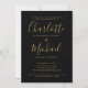 Featuring signature style names, this elegant, modern simple engagement party invitation can be personalised with your information in chic gold lettering on a black background. Designed by Thisisnotme©