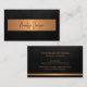 Trendy glam luxury gold copper metallic and black leather texture (BOTH PRINTED, NOT REAL) elegant script signature calligraphy professional business card with an exclusive glamourous luxurious style. +++ Easy to personalise with your business details on both sides. ++++++++++ Suitable for fashion designers, artists, boutique owner, personal stylist, interior designer, salon manager, makeup artist and other creative professions.