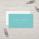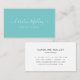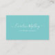 Simple and elegant business card design features your name or business name in modern, hand lettered white script typography on a vibrant light turquoise background. Add an additional line of text beneath in clean, modern block lettering for your occupation or title. Personalise the reverse side with your contact details. A chic and professional choice for any occupation.
