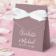 Elegant wedding favour box featuring stylish signature script names and special date set in modern typography on a mauve background. You can personalise with your own thank you message under the lid. A perfect way to say thank you to your guests! Designed by Thisisnotme©