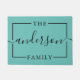 Signature Script Personalised Teal Modern Family Name Doormat. This elegant design is the perfect housewarming gift for newlyweds or new homeowners. Trendy hand lettered script is paired with a serif font for a rustic look.