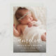 This elegant photo birth announcement features a large photo and lovely calligraphy on the front. Your newborn's first name is written in modern script, and additional details can be added below. The text overlays a full-bleed vertical photo. The neutral light grey background colour on the back of the card can be changed if desired.