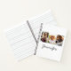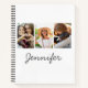 The Signature Strip Collage notebook has a triple image strip layout that adds a personal snapshot moment across the front in soft neutrals. Set against a clean white cover with script text below and a soft grey back, this photo collage design blends minimal photo styling with modern structure.