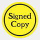 Signed copy Book promotional stickers with the text "signed copy" surrounded by a white border on a simple background. Bold, minimalist and modern font and design.