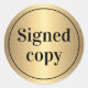 Book signing stickers featuring featuring the text "signed copy" surrounded by a thin black border on a printed image golden gradient background. Elegant font. Follow us on Instagram: @business.perfectlycustom and Facebook: @businessstationery for business related products, news and sales.