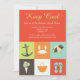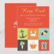 A summer-theme invitation featuring six icons of summer including an anchor, crab, beach umbrella, ice cream cone, beach bag and flip flops. Well-suited for any summer celebration. (Vecteezy.com summer icons vectors by momentbloom). The card is easy to customise with your wording, font, font colour, paper shape options and choice of six paper types.