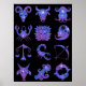 The signs of the zodiac in a blue night sky pattern...black background can be changed to whatever colour you want!
