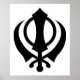 This design features the khanda (in Punjabi, ਖੰਡਾ, khaṇḍā), which is a symbol of Sikhism, a traditional religion of India that now has followers around the world. The symbol reached its current form around the first decade of the 20th century.