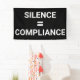 March and call out those who let racist and xenophobic comments go unchallenged with a political protest banner featuring the phrase SILENCE = COMPLIANCE in bold white text on a black background.