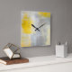 'Silence' Grey and Yellow Abstract Art Square Wall Clock