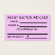 This silent auction bid card is perfect for letting people fill in their name, phone number and dollar amount of their bid on any item and placing it into the bid box. These silent auction bid cards can easily be spread out on auction tables and on dining tables all through the room.