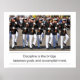 The U.S. Marine Corps Silent Drill Platoon at a public performance and the following quote "discipline is the bridge between goals and accomplishment"