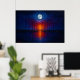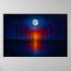 “Silent Horizon: Moon Over Water” captures the quiet power of a moonlit landscape, blending fiery sunset tones with cool, reflective blues. Tall, silhouetted trees rise against a glowing sky as the full moon casts soft light across the still water below. The mirrored reflections create a sense of balance, serenity, and depth, making this piece a striking focal point for any modern home or gallery wall.