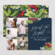 Silent (ish) night multi photo holiday card. With elegant on trend script text and beautiful festive floral watercolors this Christmas photo cards is sure to suit your style this holiday season.