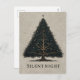 An artistic and nostalgic holiday greeting card design featuring a meticulously detailed, hand-drawn evergreen tree. The tree is rendered in a dark teal-green ink with fine, cross-hatched branches that are adorned with numerous small, shimmering gold stars. A single, larger gold star sits at the very peak of the tree. The illustration is centered on a light grey, highly textured paper background that gives it a rustic, handcrafted feel. At the bottom, the phrase "SILENT NIGHT" is printed in a clean, sophisticated dark grey serif font.