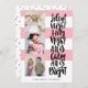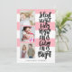 Modern and funny multi photo holidays card featuring three square picture and a brushed casual typography saying "Silent night, all is calm all is bright" in black over a striped pattern.