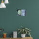 The pale emerald green planet and the regularly spaced, futuristic building lights create a design reminiscent of a quiet journey through space, transforming your living space into a special place, detached from everyday life.