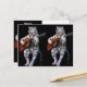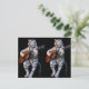 This clean, artful postcard highlights a serene white tiger in a dramatic dark setting, playing an acoustic guitar with quiet concentration. A beautiful, minimal piece suitable for framing or sending.