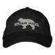 This fantastic Clumber Spaniel hat is embroidered with the dog breed's silhouette, standing with its name printed in front. The sporting dog's silhouette is a dark silver grey, and the text outline is white. Looks fantastic on our black hats!