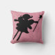A pink patterned background with a silhouette fairy princess with her magic wand on a pillow she's sure to love to own!