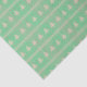This pretty tissue paper is perfect for the Holiday Season, but can easily go through the entire winter. It features a repeating pattern of faux knit silhouette tree images. The light coloured images are placed on a mint green background. Decorative stripes separate the rows of images, while delicate snowflakes fall over all.