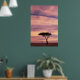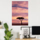 Silhouette image of acacia tree at sunrise poster