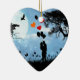 Romantic moonlight scene of a silhouetted couple kissing holding heart shaped balloons. Alternative to traditional Christmas ornament.
