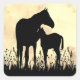 Silhouette Mare and Foal in Field Horse Square Sticker